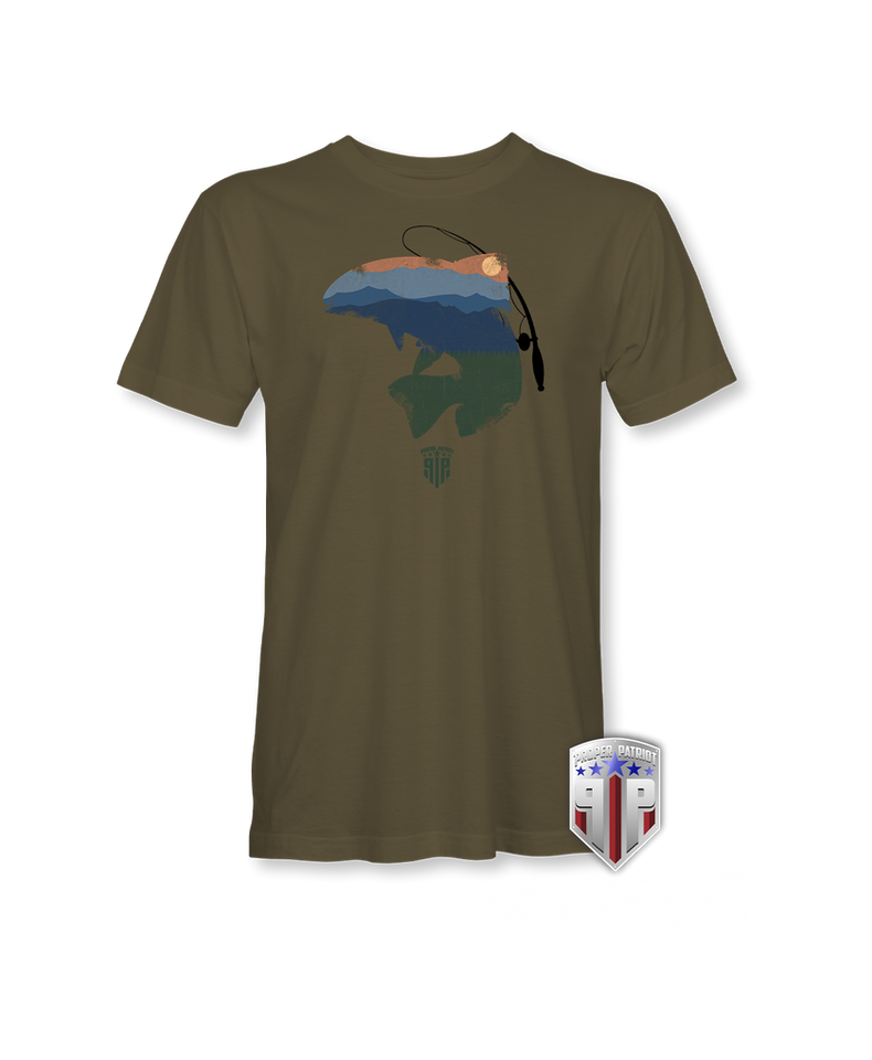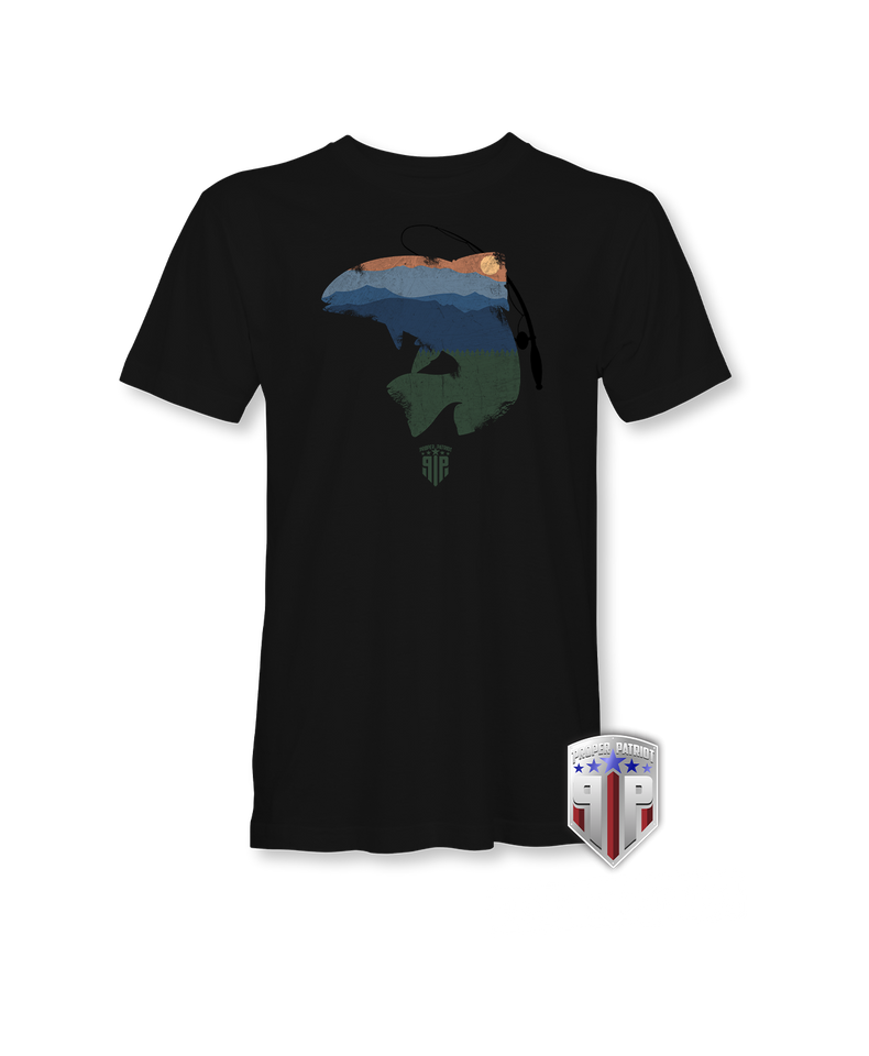 Trout Fishing Shirt - Mountain Sunset - Great Outdoors - Patriotic Shirts for Me